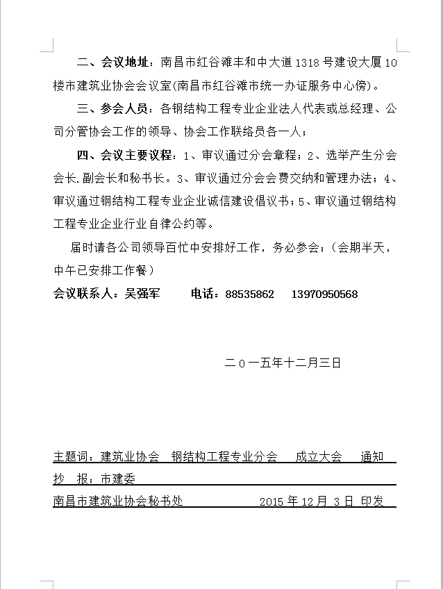 關(guān)于召開(kāi)南昌市建筑業(yè)協(xié)會(huì)鋼結(jié)構(gòu)工程專業(yè)分會(huì)成立大會(huì)的通知