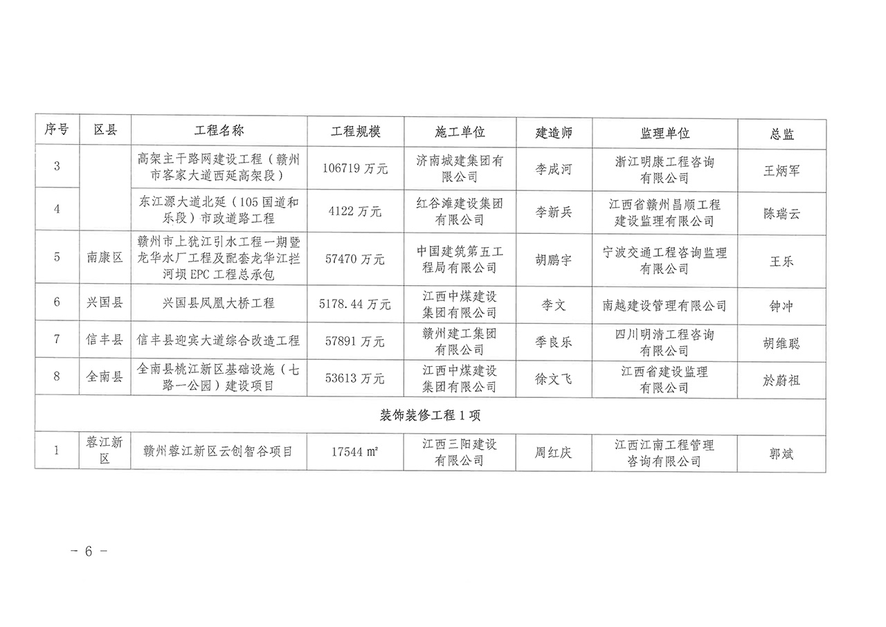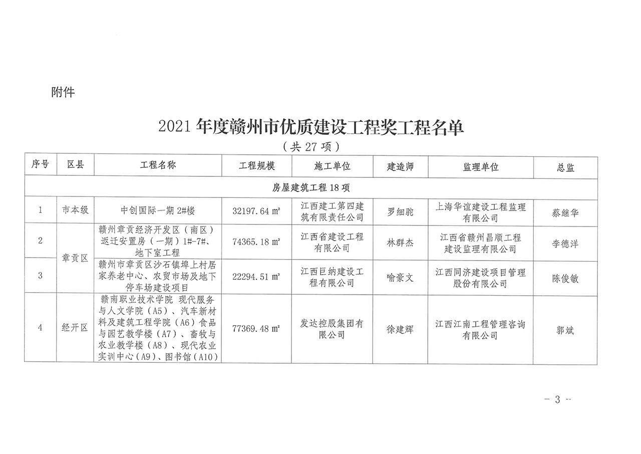 關于公布2021年度贛州市優質建設工程獎工程名單的通知